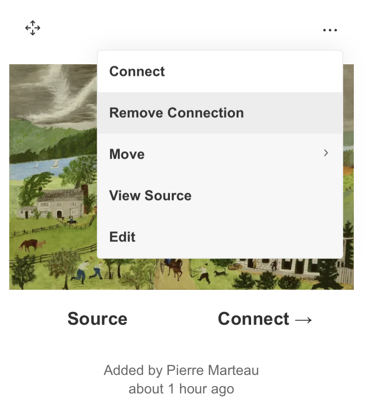 To remove a block from one of your channels, hover on the block you want to remove, tap the three dots in the top right corner, and click "Remove Connection".